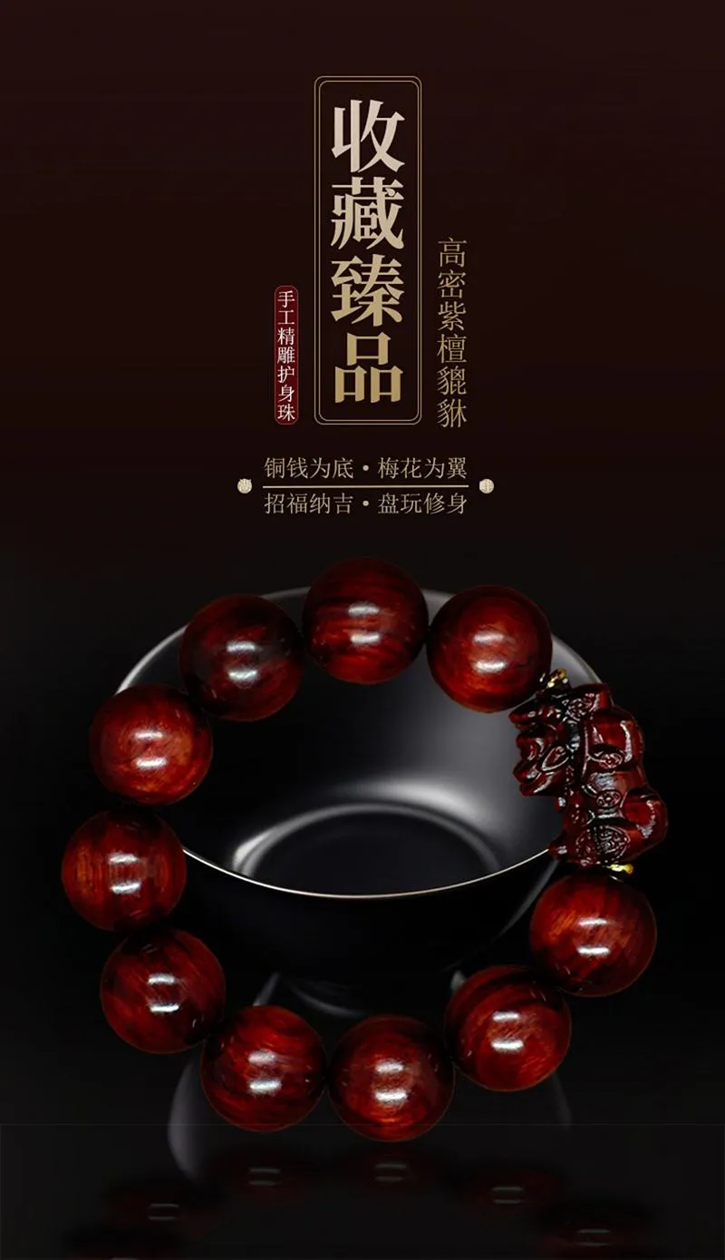 5分鐘前紫檀貔貅手串 沉水紫檀木貔貅手串高密度高油性 - 【免運!】1入組-NT$998
