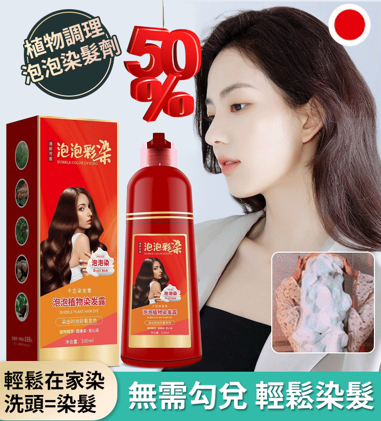 5分鐘前大紅瓶親膚溫和泡泡染髮 - 【熱銷精選】買1送1★$899(低至449/入)